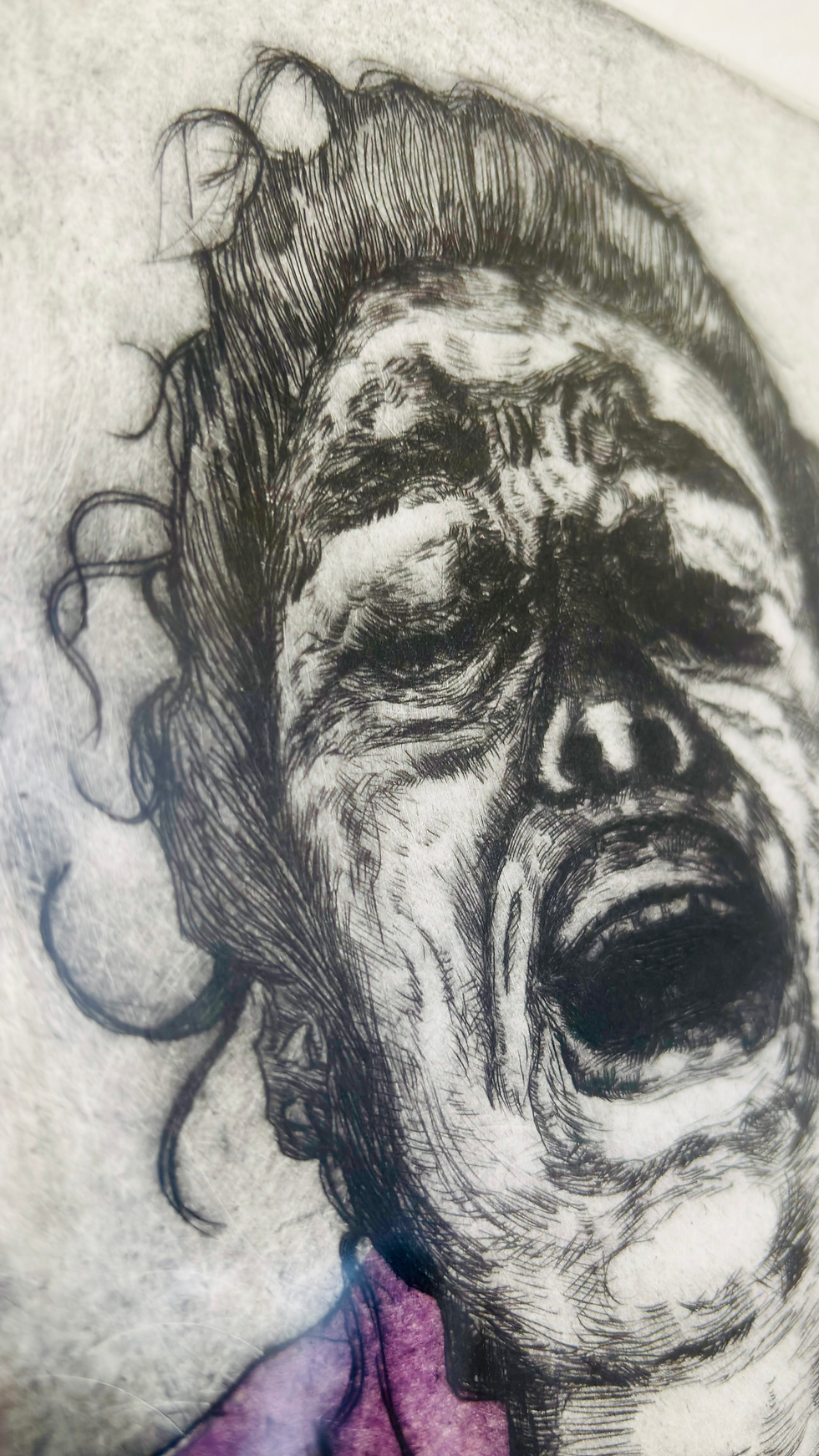 Esta obra captura cómo una mujer flamenca se arremete con su mantón, falda y vestido, convirtiendo su atuendo en parte esencial de la expresión del baile. Cada movimiento transmite ira, pasión o fuego, que ella envuelve con impulso en sus manos,bailando por tangos y señalando con su dedo al público, anticipando la intensidad de lo que van a presenciar. Un acto de amor y fuerza que prende el escenario y convierte cada gesto en un incendio de emoción.